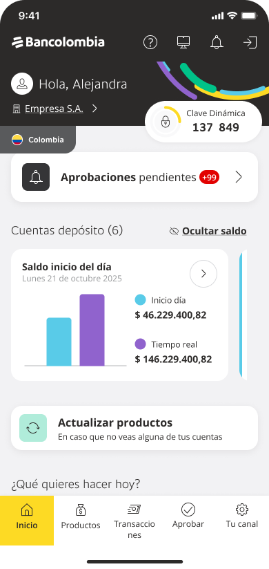 En un entorno empresarial cada vez más dinámico, donde la velocidad y la disponibilidad son clave, los negocios necesitan soluciones financieras que les permitan operar sin fricciones y desde cualquier lugar. En Colombia, las empresas impulsan la economía, pero durante años han tenido que enfrentarse a procesos dispersos y experiencias poco integradas en el sistema bancario. App Negocios nace como una plataforma integral que centraliza la gestión financiera en un solo lugar, permitiendo a los empresarios administrar sus recursos en tiempo real, optimizar su operación y tomar decisiones con mayor agilidad.