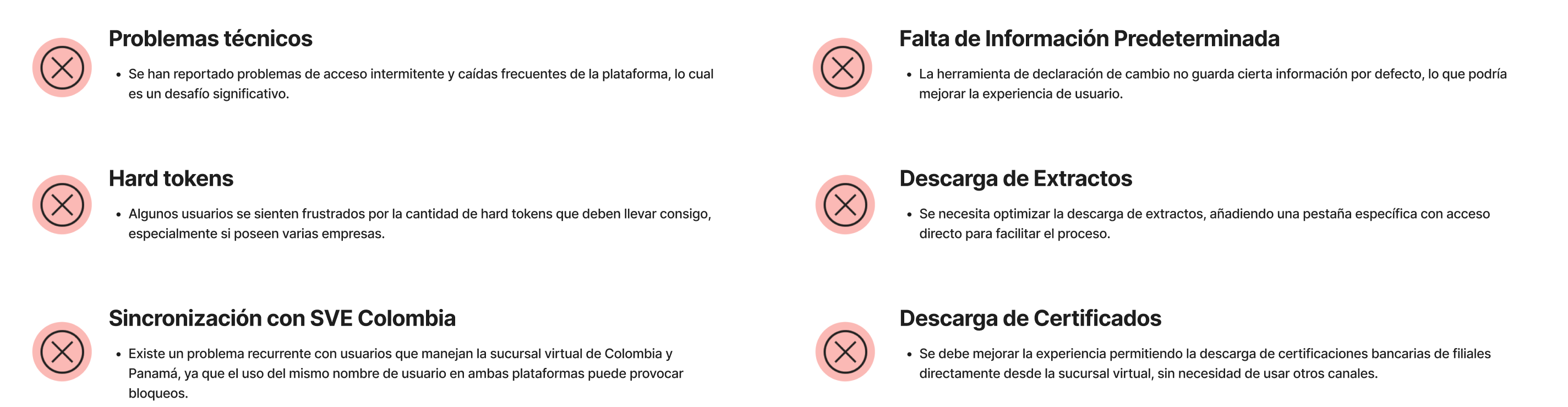 Los comentarios negativos señalan problemas recurrentes con la estabilidad del sistema, incluyendo caídas frecuentes y demoras, especialmente los viernes, lo que a veces impide cumplir con pagos a proveedores. También se mencionan dificultades para acceder a la plataforma y la confusión en algunas funcionalidades, como los nombres de tipos de transacciones y la división entre comercio internacional y otras transacciones.