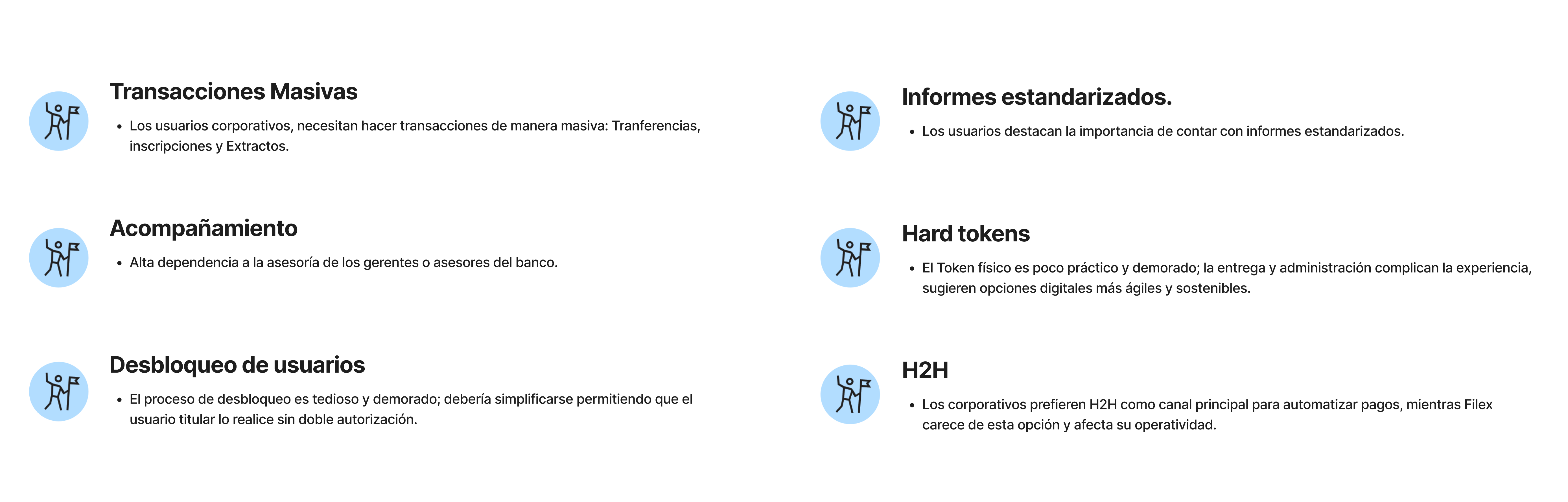 4- Entender qué valoran y cuáles son los dolores que experimentan los usuarios con las funcionalidades que utilizan actualmente.
