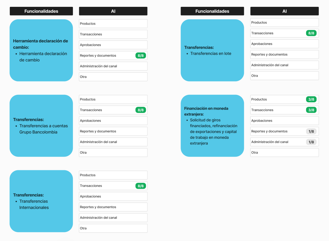 En general, los agentes comerciales han observado que los usuarios de la plataforma utilizan principalmente las funcionalidades de transferencias, generación de informes, radicación de solicitudes de financiación, y reportes para el Banco de la República y la DIAN. Estas funcionalidades parecen estar cubriendo adecuadamente las necesidades actuales de los usuarios.