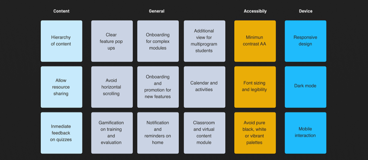Las pruebas beta fueron fructíferas. Se trajo a 27 estudiantes para probar in situ el prototipo final y descubrimos que disfrutaron de la nueva interfaz de usuario y de lo fácil que estaba estructurada la información. Las tareas incluidas en el prototipo fueron: ingresar a una sesión vista anteriormente, encontrar el siguiente tema de estudio, entregar tareas, navegar siguiendo la ruta de estudio, resolver cuestionarios y evaluaciones. También después del estudio de usabilidad, pedí a los participantes que completaran un breve cuestionario sobre la escala de usabilidad del sistema y los dispositivos. Al final creamos más de 60 pantallas para la plataforma web y la aplicación móvil. Sabemos que todavía hay mejoras en el producto con cada nuevo módulo, sin embargo, estamos orgullosos porque el nivel de interacción de la plataforma aumentó y los estudiantes pudieron realizar todas las tareas requeridas.