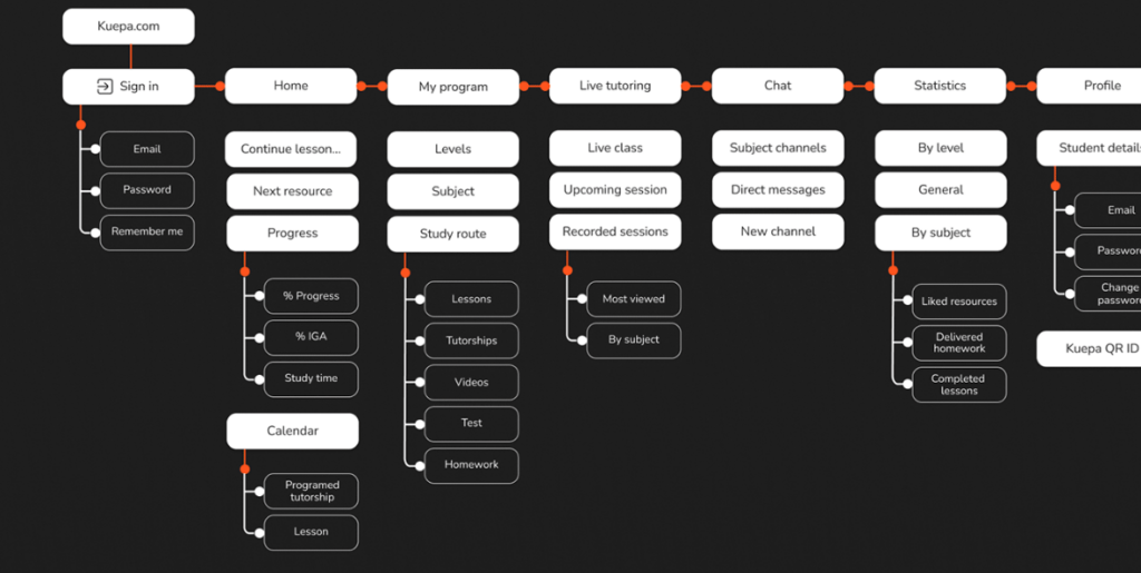 Kuepa está experimentando un rápido crecimiento. Con la afluencia de estudiantes matriculados durante la pandemia y la implementación de programas técnicos y profesionales, la plataforma actual mostraba limitaciones. La demanda de nuevas características para respaldar el novedoso modelo de aprendizaje “asincrónico” propuesto por el equipo académico nos impulsó a desarrollar una plataforma versátil capaz de ofrecer un mapa de estudio, sesiones en vivo y grabadas, así como diversas opciones para que los estudiantes accedan a los contenidos de manera flexible.