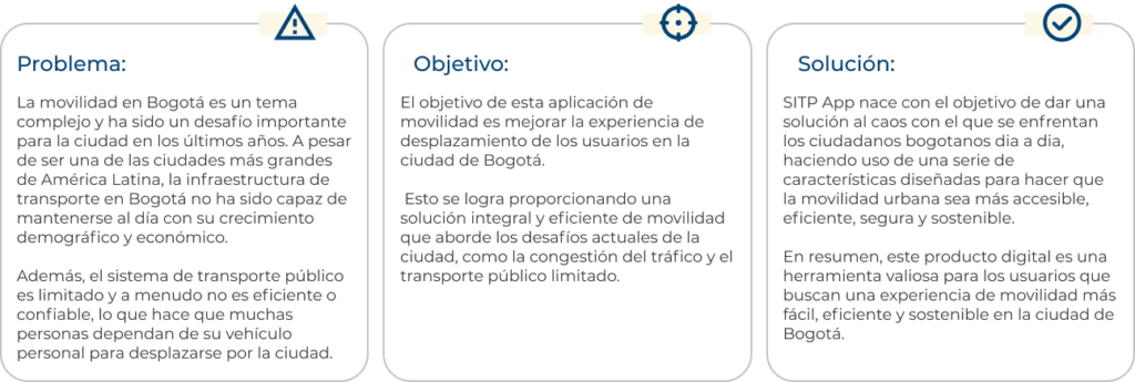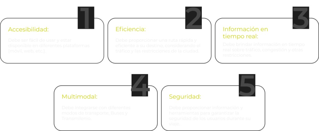 Las características principales de este producto digital de movilidad en Bogotá, debería incluir: